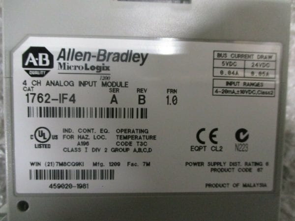 Allen Bradley 1762-IF4 4 Channel Analog Input Module Ser A Rev B FRN 1.0*Tested*