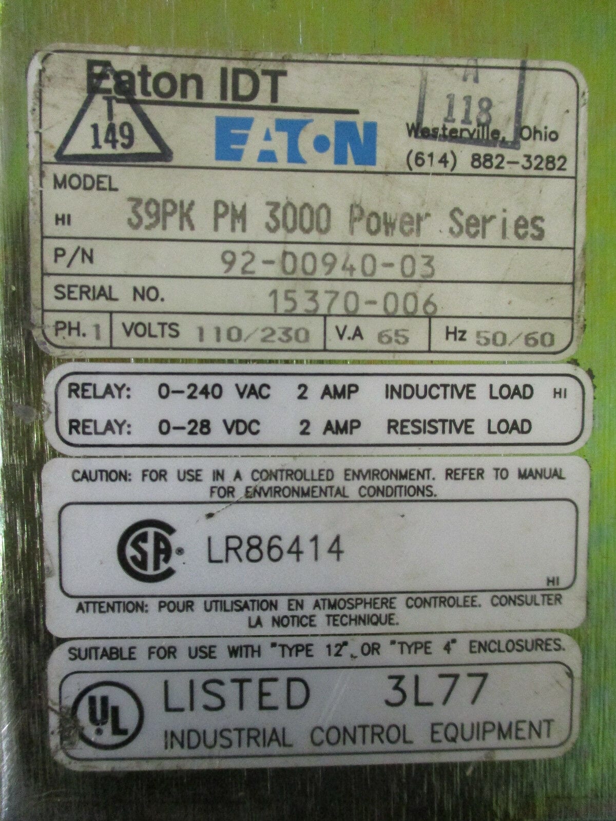 - This EATON IDT Panelmate came from factory surplus used stock and is in great working condition.