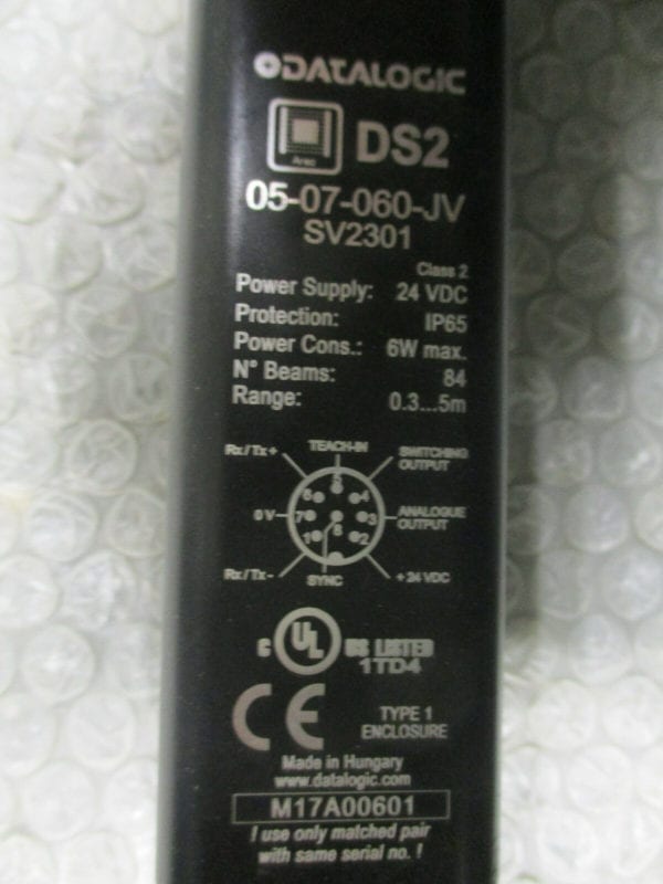 Datalogic DS2 Receiver DS2-05-07-060-JV Area Scan SV2301 24DC 6W 0.3-5m *Tested*