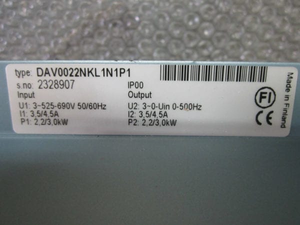 You are bidding for Dynac DAV0022NKL1N1P1 Vector Control AC Drive,