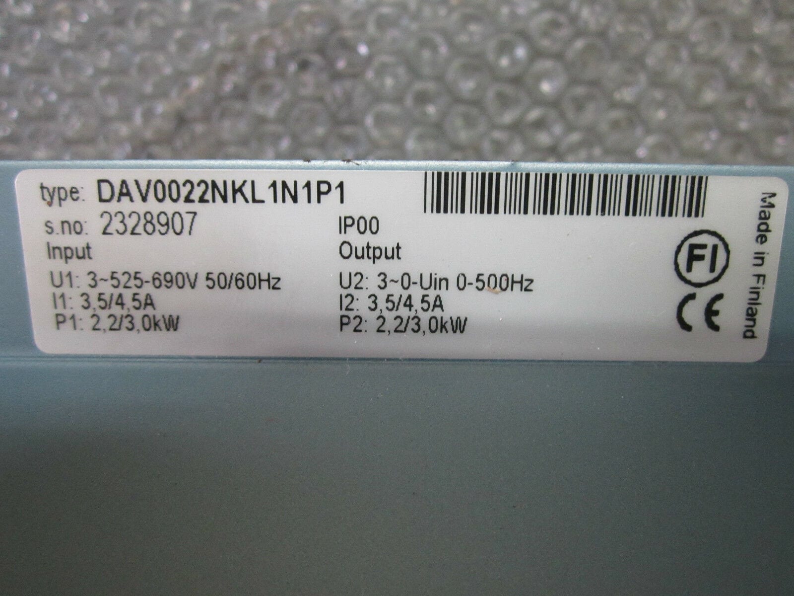 Dynac DAV0022NKL1N1P1 Vector Control AC Drive 2.2/3.0kW 600VAC *Fully Tested*