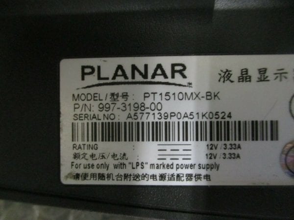 PLANAR PT1510MX-BK Touch Screen 15″ Monitor 997-3198-00 Display 12VDC *Tested*